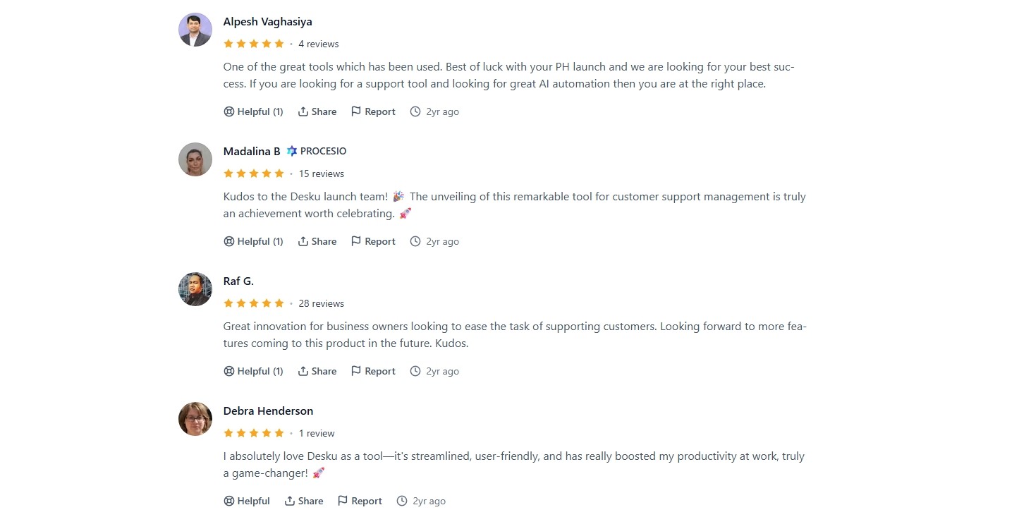 Businesses that implemented Desku's solutions reported significant improvements: Enhanced Efficiency: Automation of routine tasks led to faster response times and reduced workload for support teams. Improved Customer Satisfaction: Personalized and prompt support increased customer loyalty and positive feedback. Streamlined Communication: The unified inbox and shared inbox features eliminated communication silos, ensuring cohesive and coordinated customer interactions.