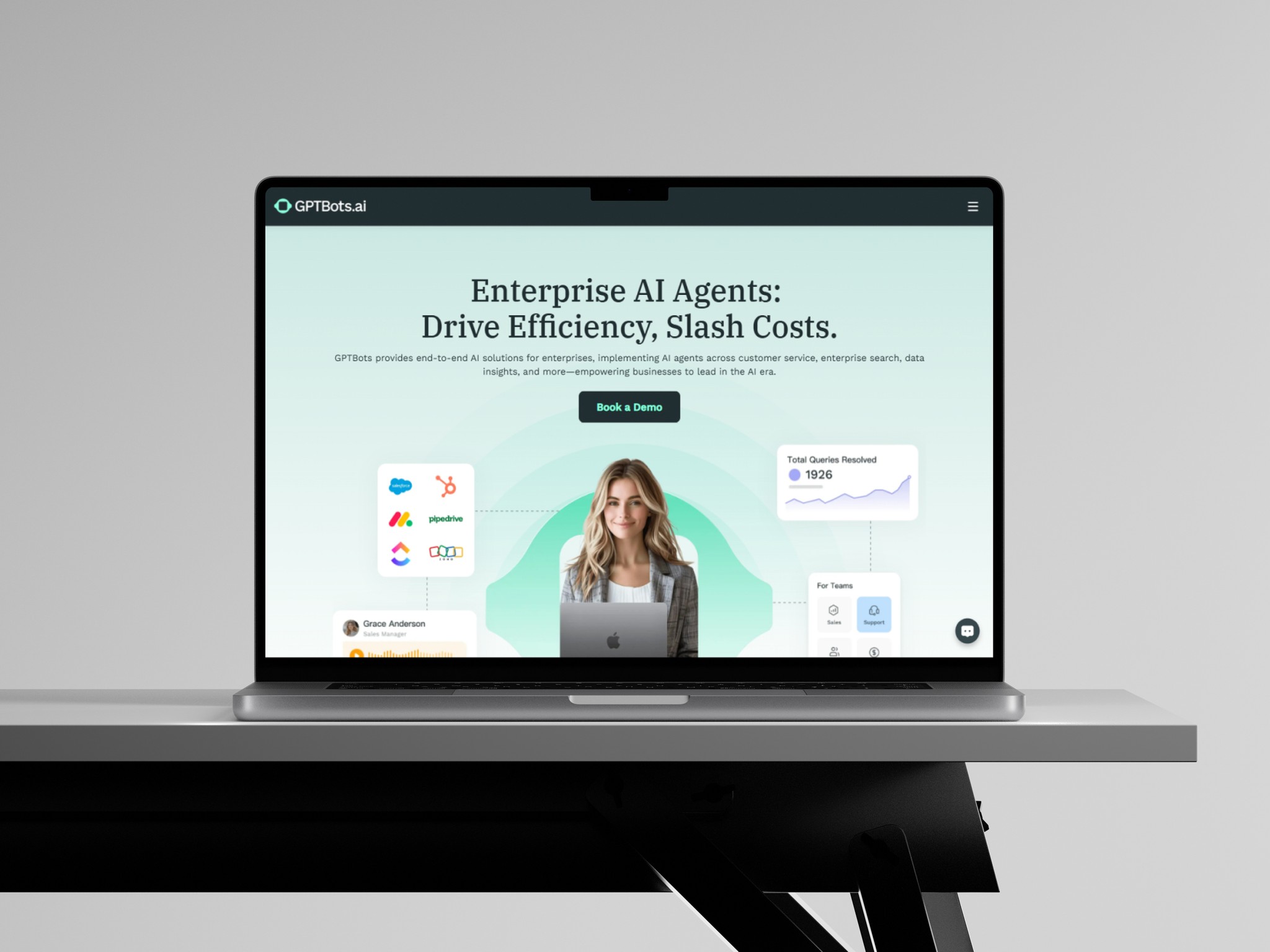 Our new site positions GPTBots.ai as a trusted AI-as-a-Service partner. We use clear, quantitative headlines (e.g., "Increase Sales Leads by 300%") to show instant value. Story-driven visuals like interactive chats and graphs guide prospects from problem to solution, boosting demo bookings. A scalable design system lets us add new content quickly. Early metrics confirm a 40% jump in 'Book a Demo' clicks and increased engagement.